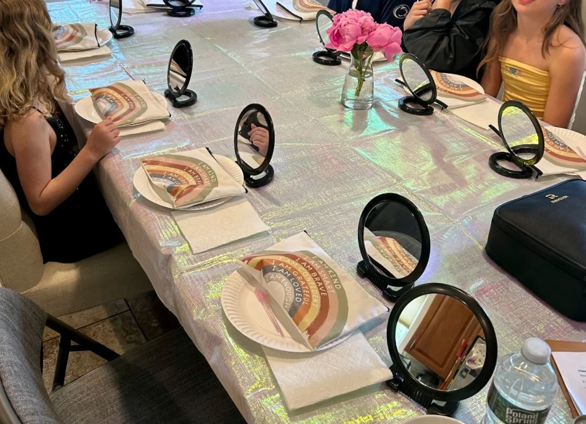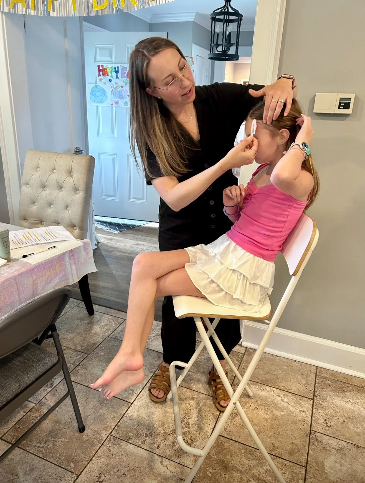 The birthday girl will be our “model,” taking a seat in the high makeup chair while we demonstrate techniques on one side of her face. Then, she’ll get to try the other side herself while the rest of the group follows along on their own. We'll guide everyone step-by-step, offering help and encouragement throughout to keep things fun and easy.